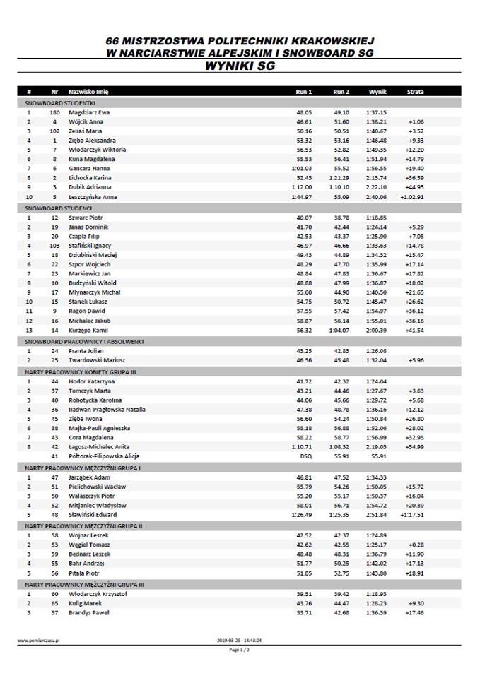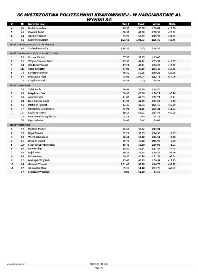 Blisko 120 uczestników (studenci, pracownicy, absolwenci i zaproszeni goście ) rywalizowali w slalomie i gigancie.