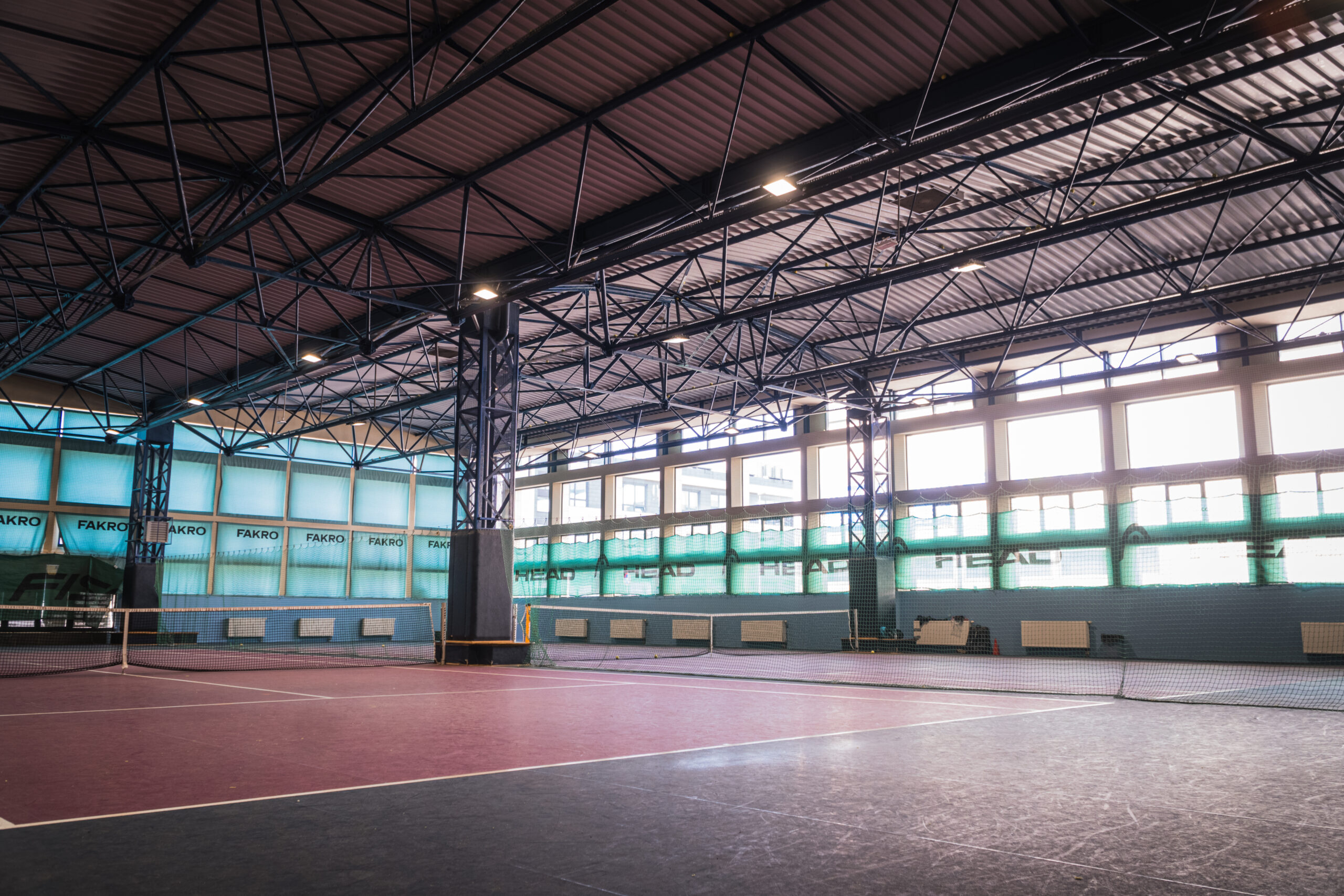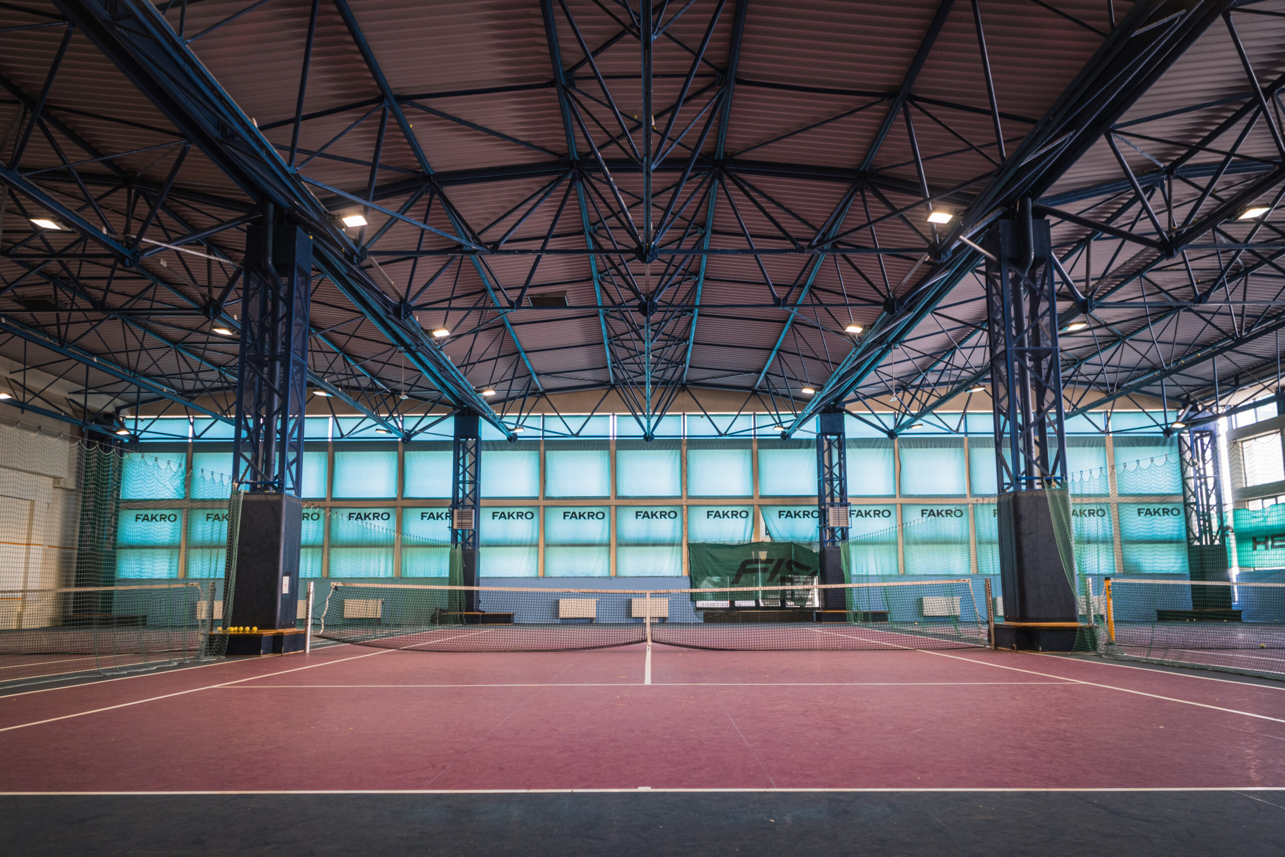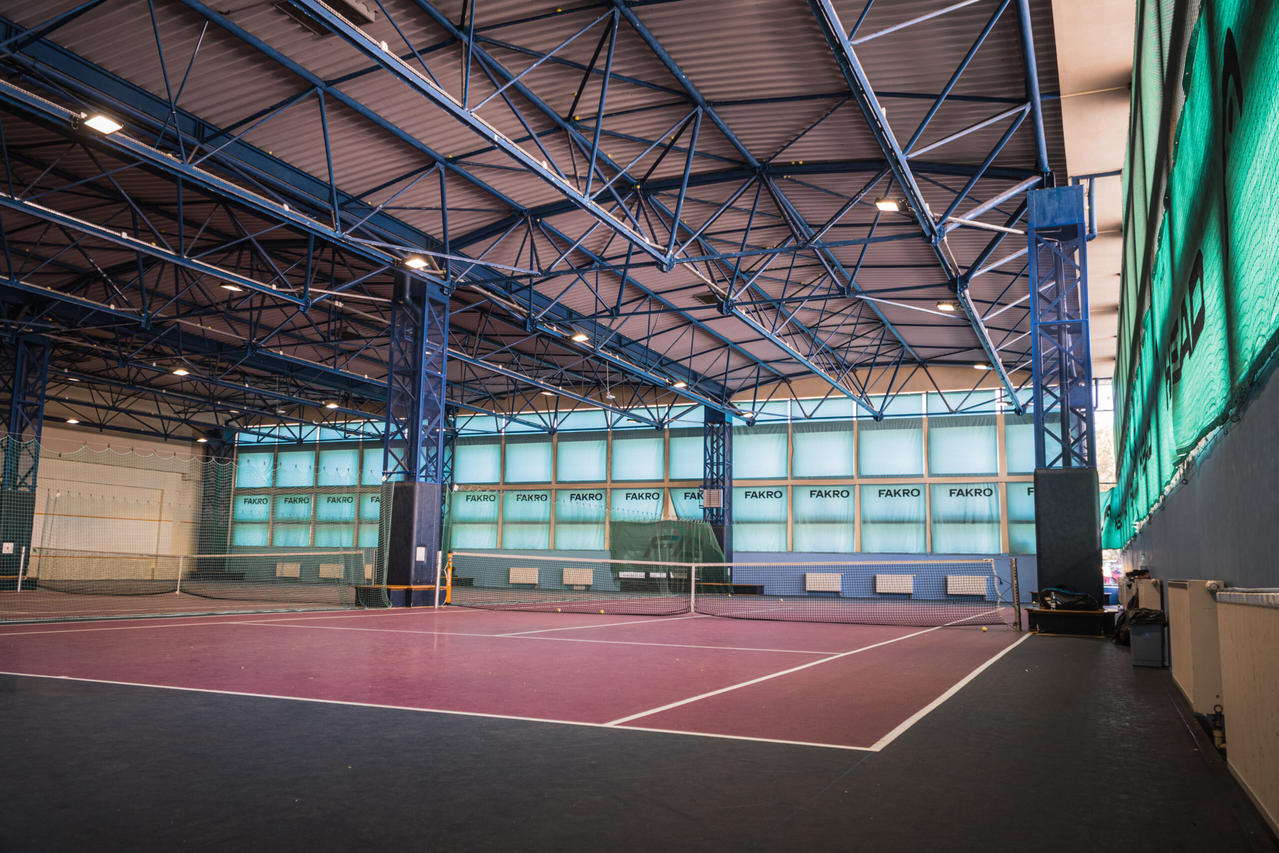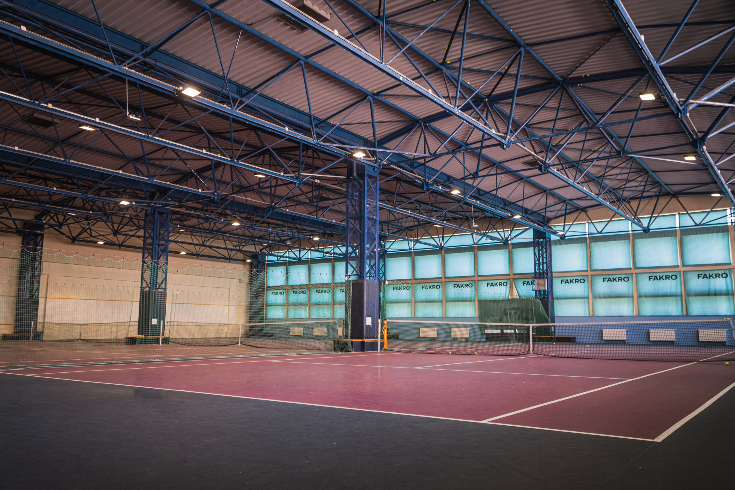 Posiadamy 3 pełnowymiarowe korty kryte, 3 boiska badmintonowe kryte, 2 korty do squasha kryte.