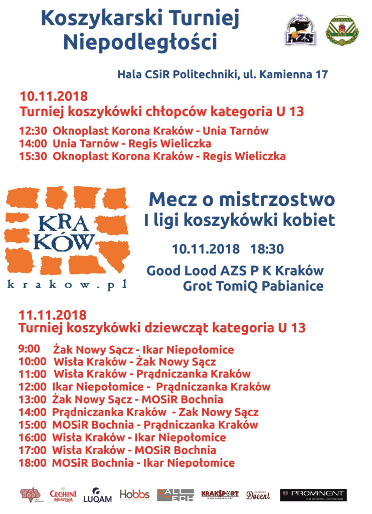 Warto zaznaczyć, że na obiektach Centrum Sportu i Rekreacji Politechniki w dniach 10-11 listopada będzie odbywał się Koszykarski Turniej Niepodległości z udziałem młodzieżowych ekip chłopców oraz dziewcząt w kategorii wiekowej U 13.