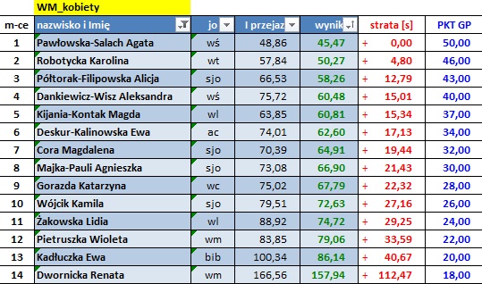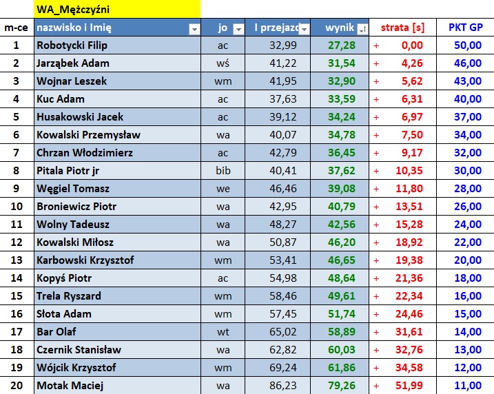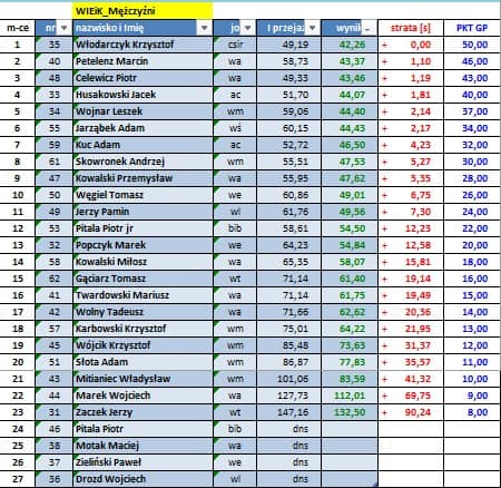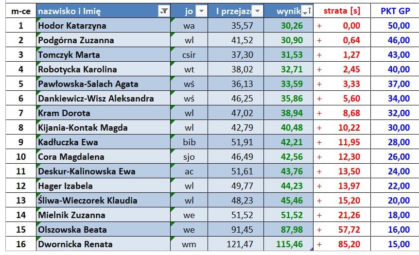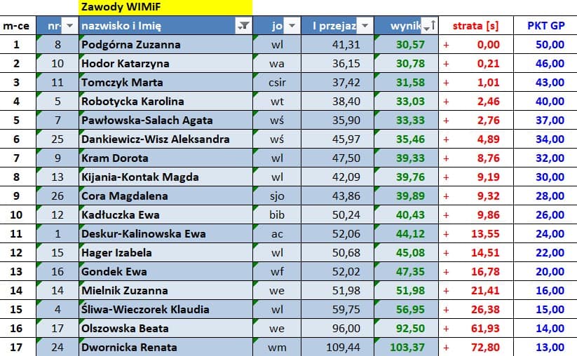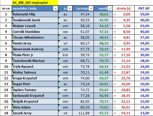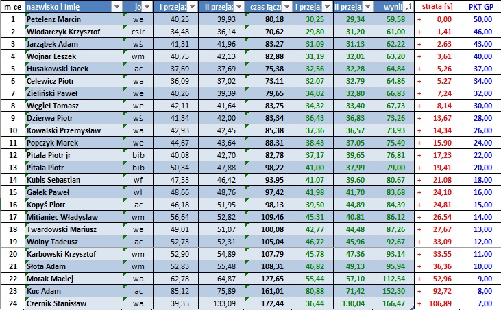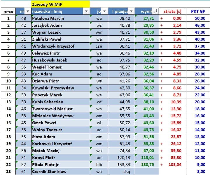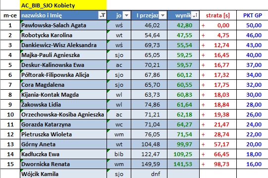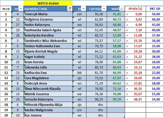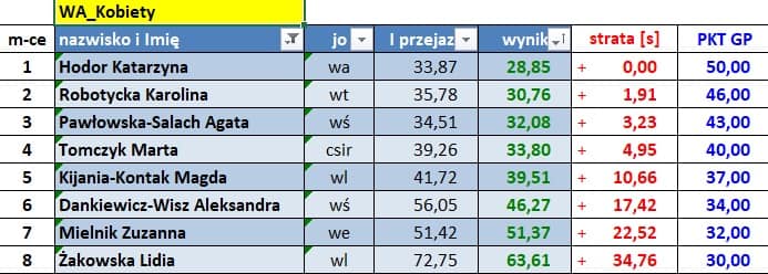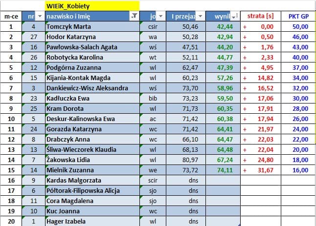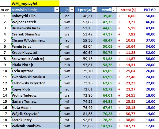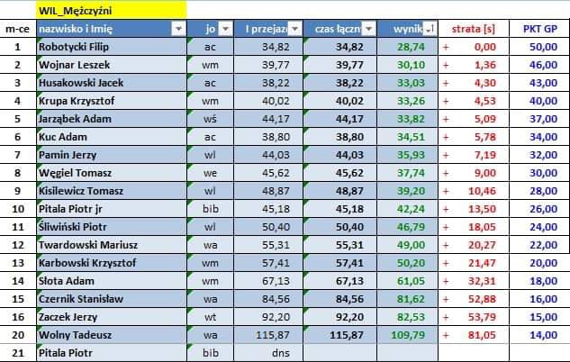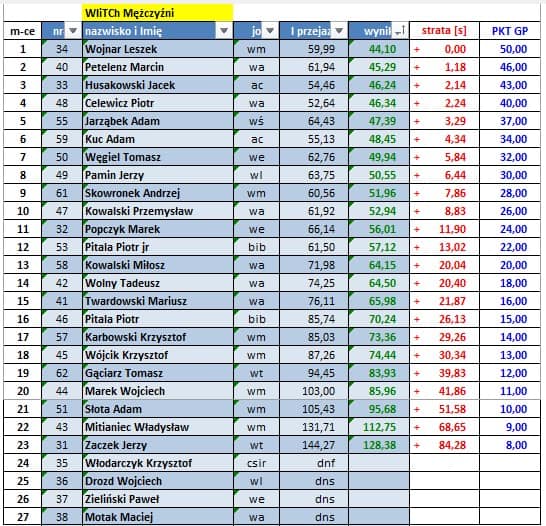 Wyniki poszczególnych zawodów