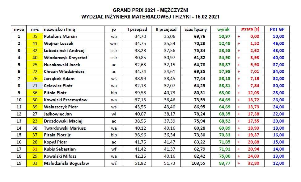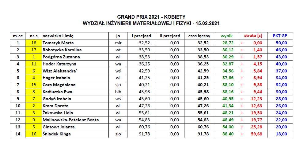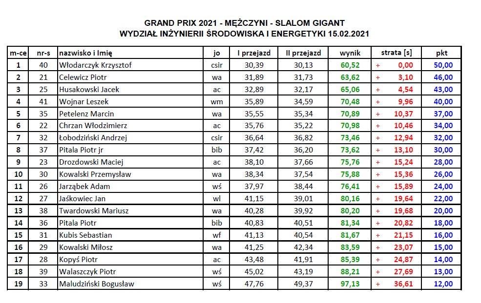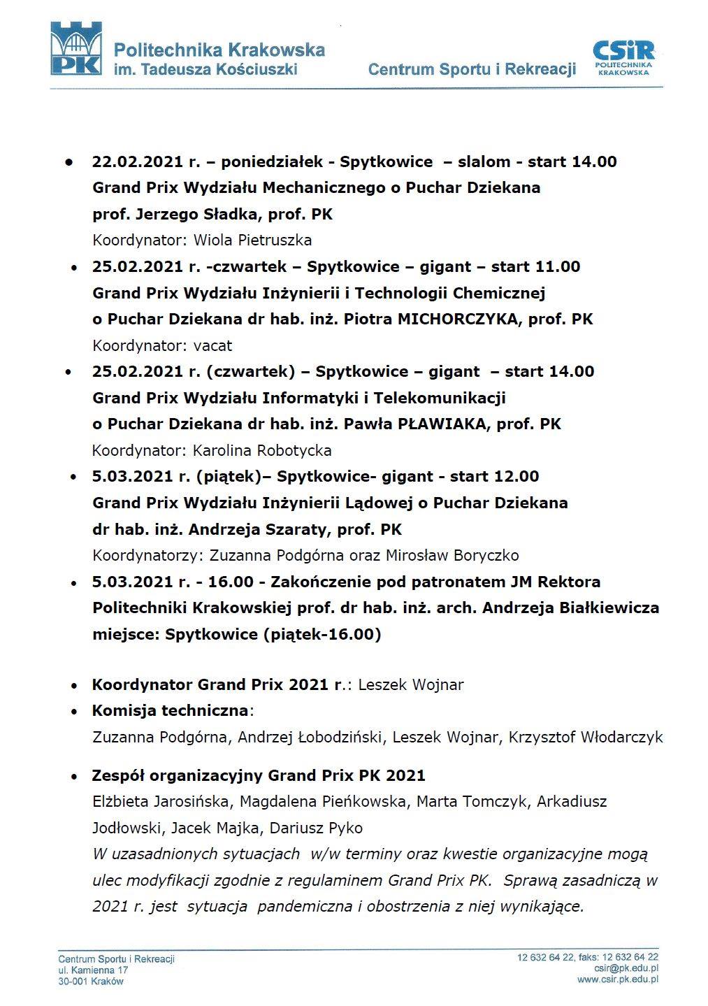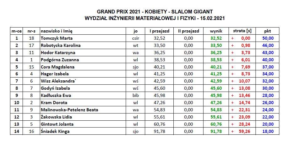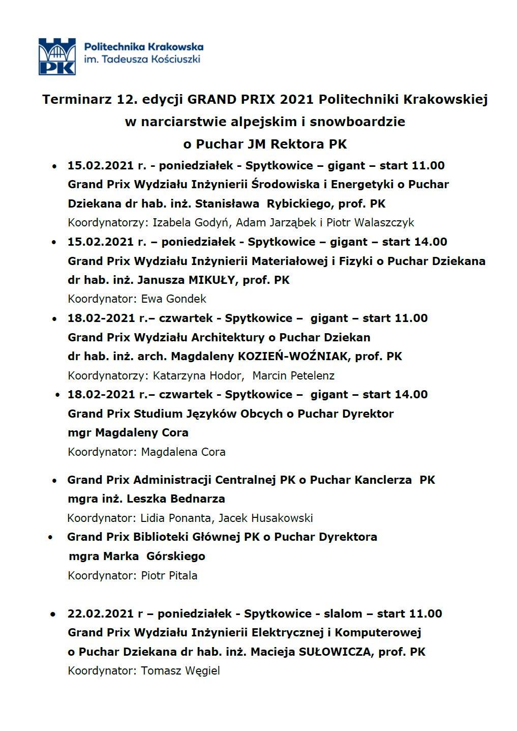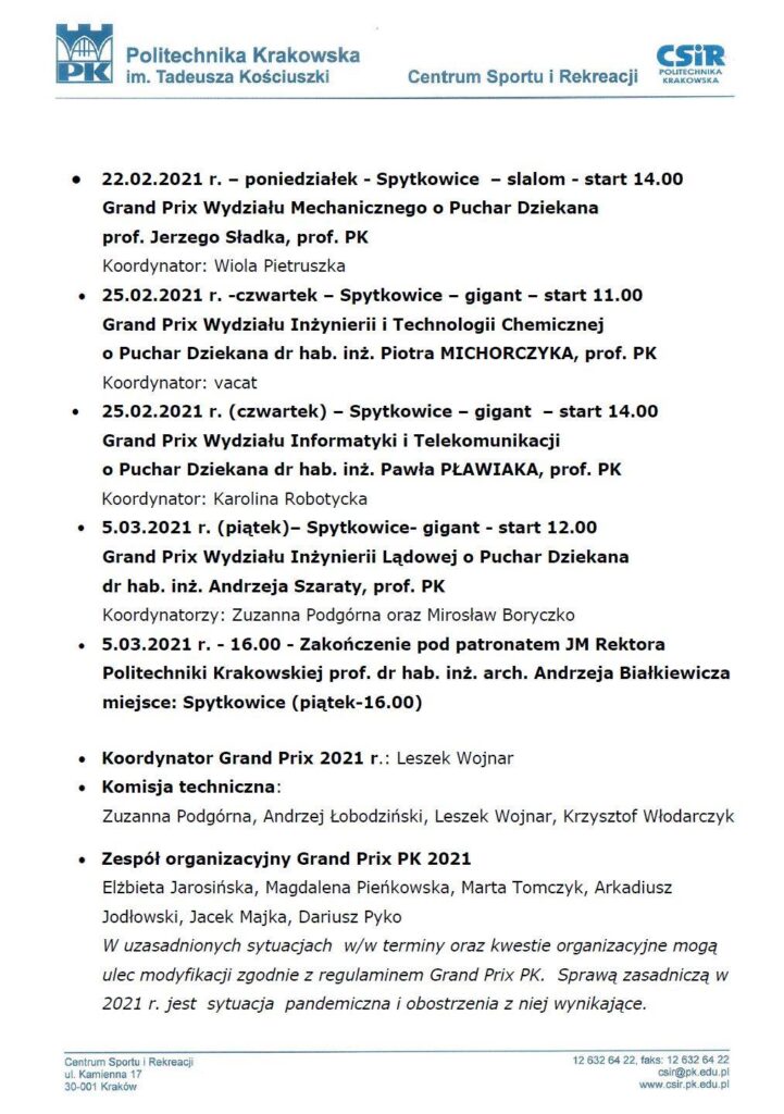 24.02.-godz. 11.00 ( WIT), godz. 14.00 (WIL) 2xGS w tym dniu zakończenie o godz.18.00