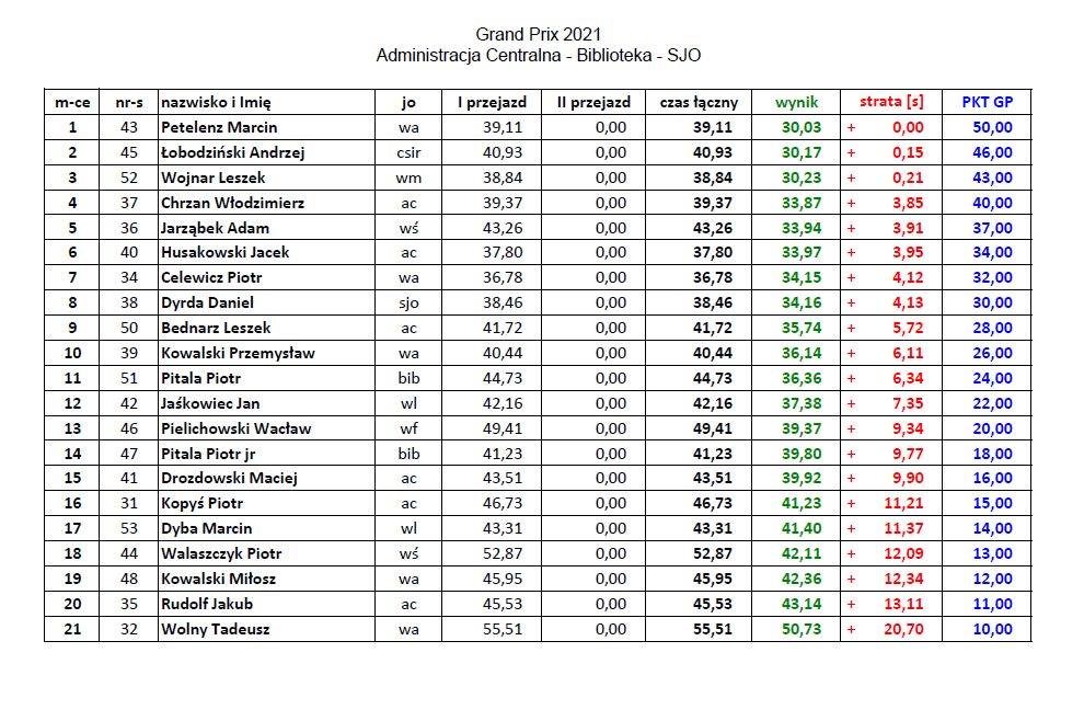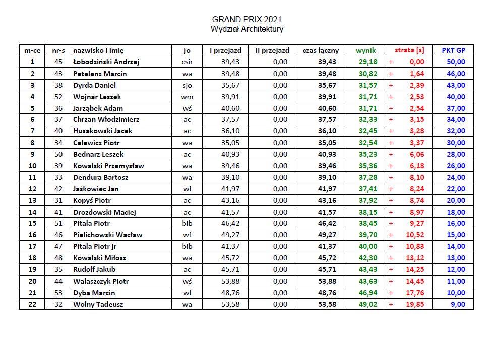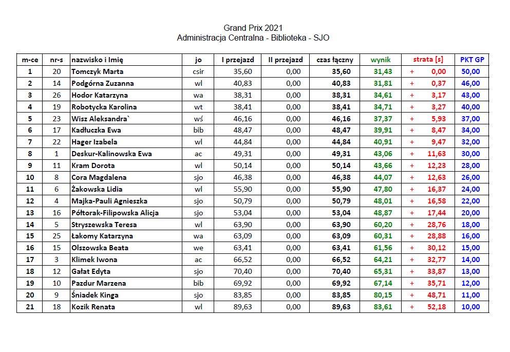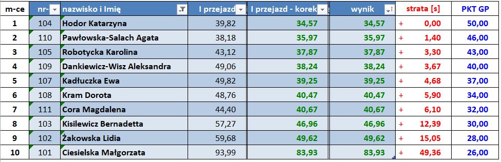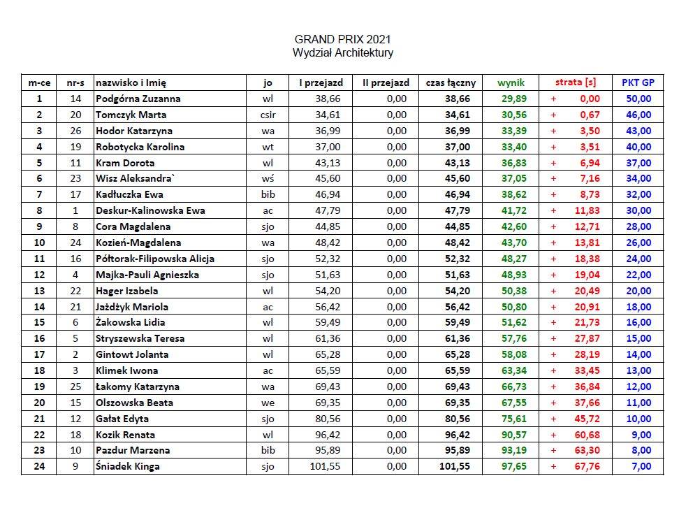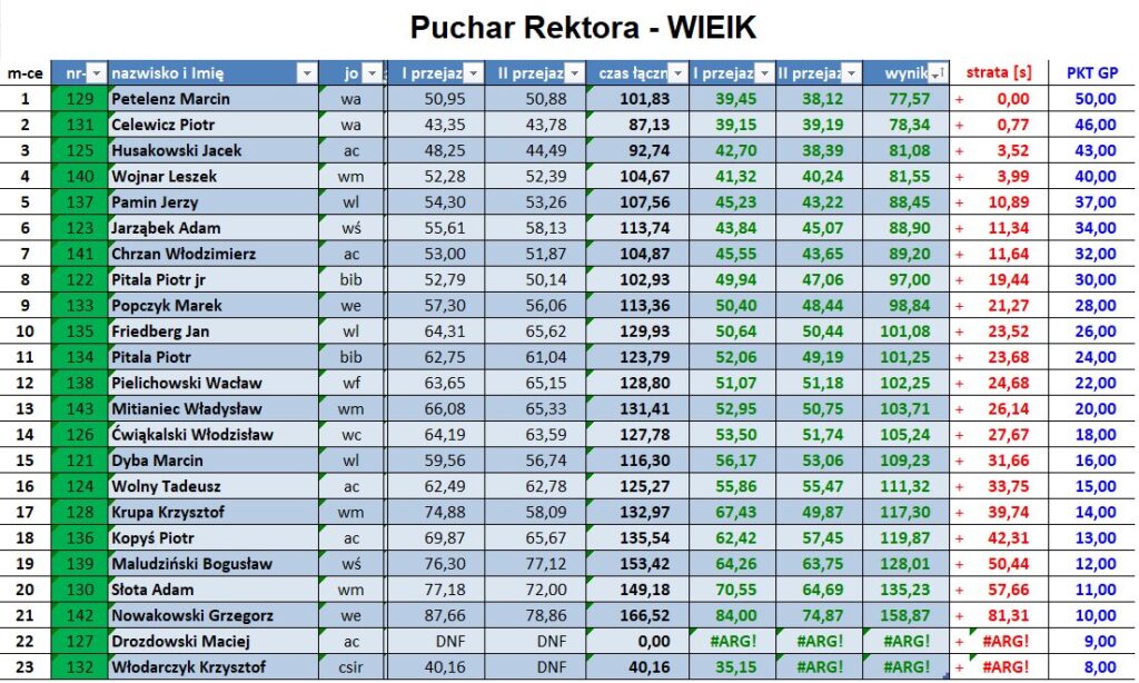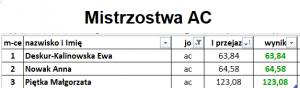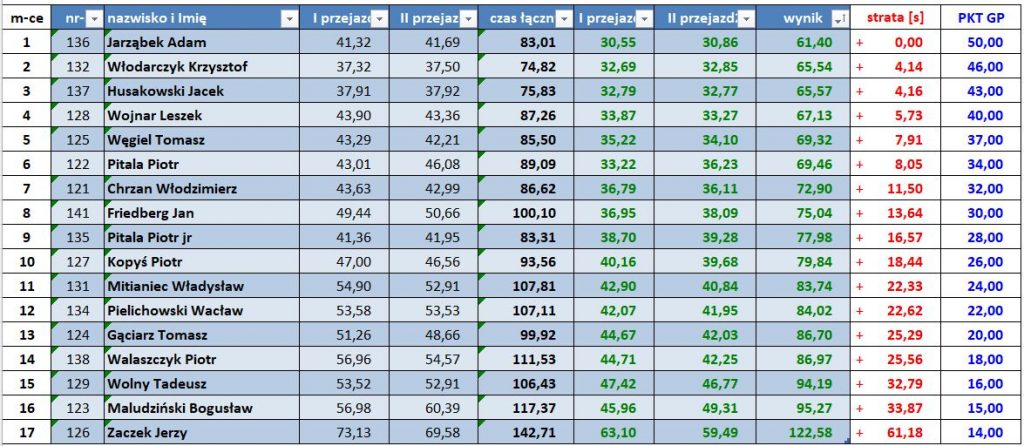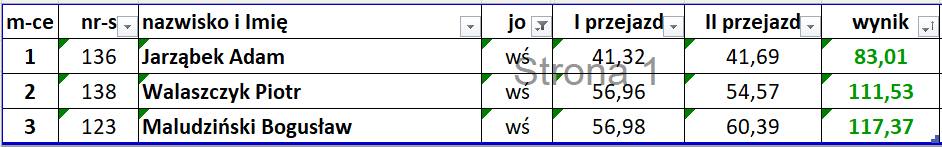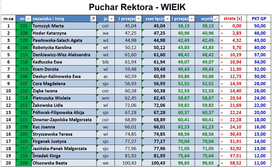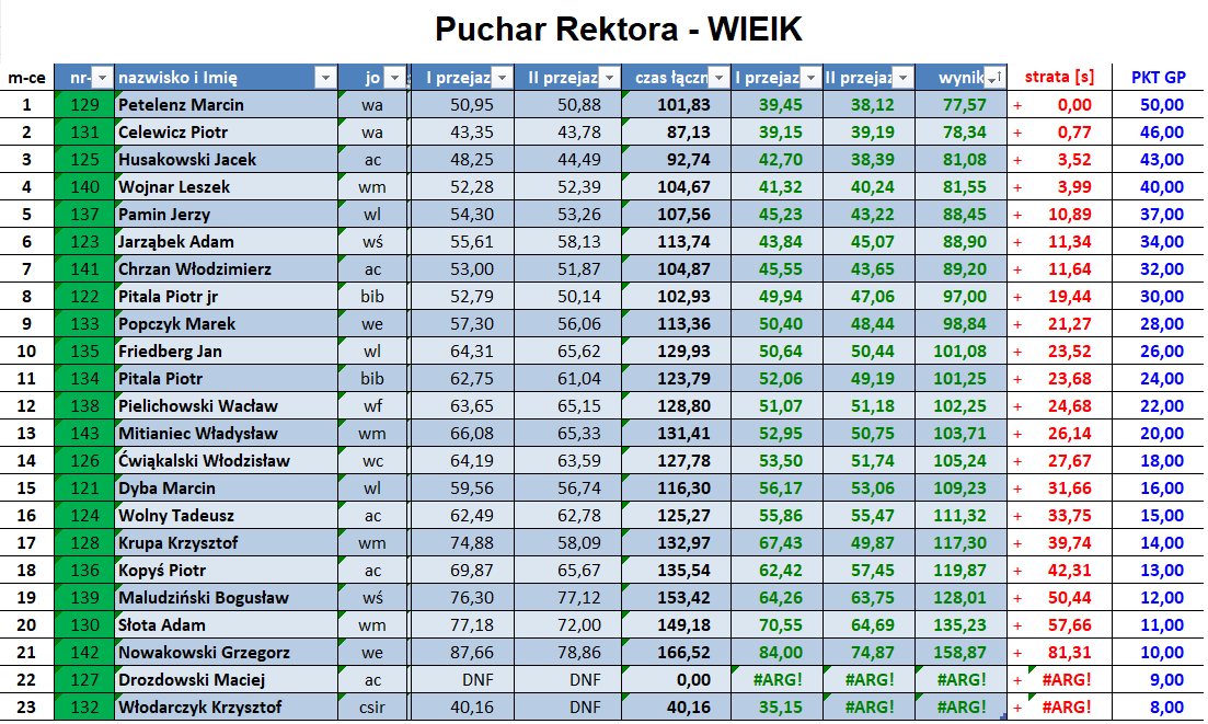 Wyniki poszczególnych zawodów