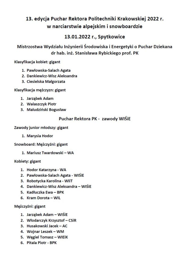 Wyniki WIEiK